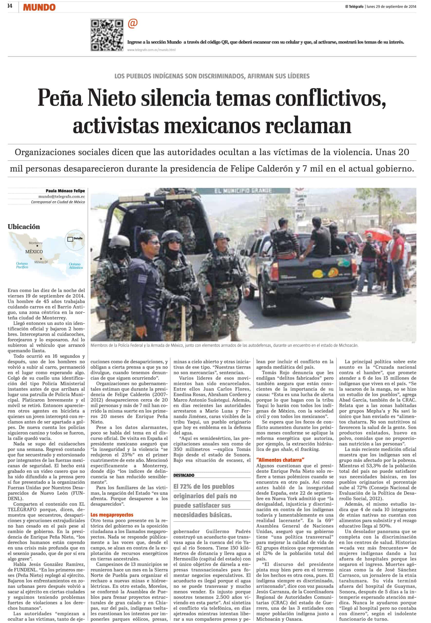 Paula Mónaco Felipe Especial para La Jornada Periódico La Jornada Lunes 6 de octubre de 2014, p. 7 Tixtla, Guerrero. En la cancha de basquetbol se han suspendido los juegos. En lugar de risas y gritos, el silencio reina en la Escuela Normal Rural de Ayotzinapa, en el estado de Guerrero. En el centro del