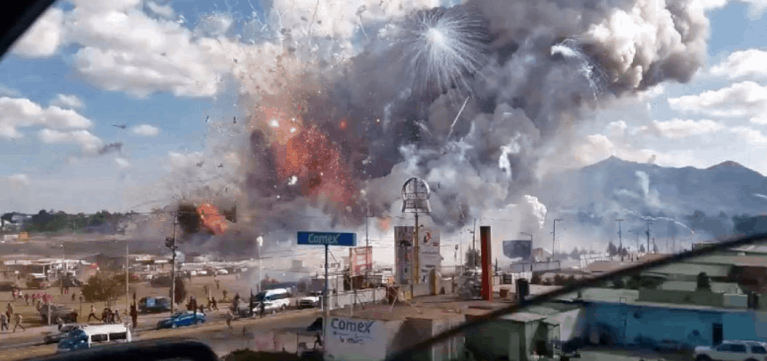 A las 14:50 se escuchó la primera explosión en el mercado San Pablito y desde entonces no hubo pausa, cohetes, fuegos artificiales y bombas detonaban al mismo tiempo incendiándolo todo en un predio de 4,5 hectáreas que se estima reunía unas 300 toneladas de pólvora, donde había cerca de 2.000 personas, entre locatarios y compradores. Varios minutos duró el fuego: destruyó todo cuanto había, llegó más allá porque la onda expansiva alcanzó vehículos y casas cercanas.