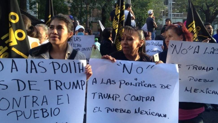 El Telégrafo, Ecuador Viernes, 20 de Enero de 2017, sección Mundo Paula Mónaco Felipe, corresponsal en México Pusieron su rostro en piñatas y derribaron un muro simbólico: desde la Ciudad de México
