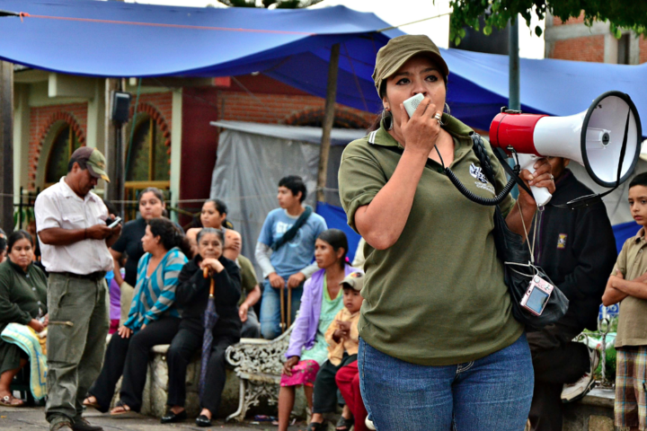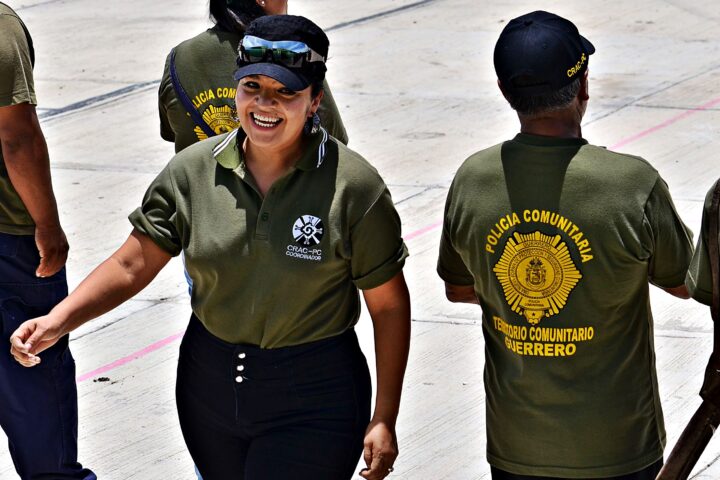 El Telégrafo, Ecuador Viernes 18 de marzo de 2016, sección Mundo Paula Mónaco Felipe, corresponsal “Policía comunitaria”, dicen letras amarillas en camisetas de color verde. Quienes las portan son en su