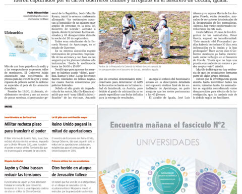Paula Mónaco Felipe Periódico La Jornada Domingo 9 de noviembre de 2014, p. 10 Tixtla, Guerrero.”Estamos acá en Iguala, vinimos a apoyar a nuestros compañeros porque los balacearon”. Fue lo último que